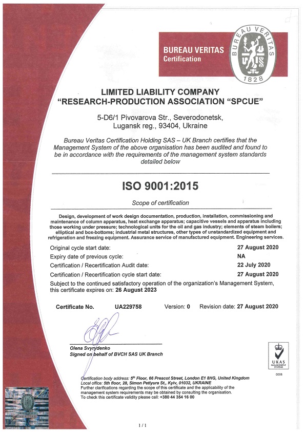 «Северодонецкий завод химического нестандартизированного оборудования» имеет разрешения, лицензии, сертификаты соответствия органов Госнадзорохрантруда Украины и Евразийского экономического союза, выданных в установленном порядке, на осуществление следующих видов деятельности: