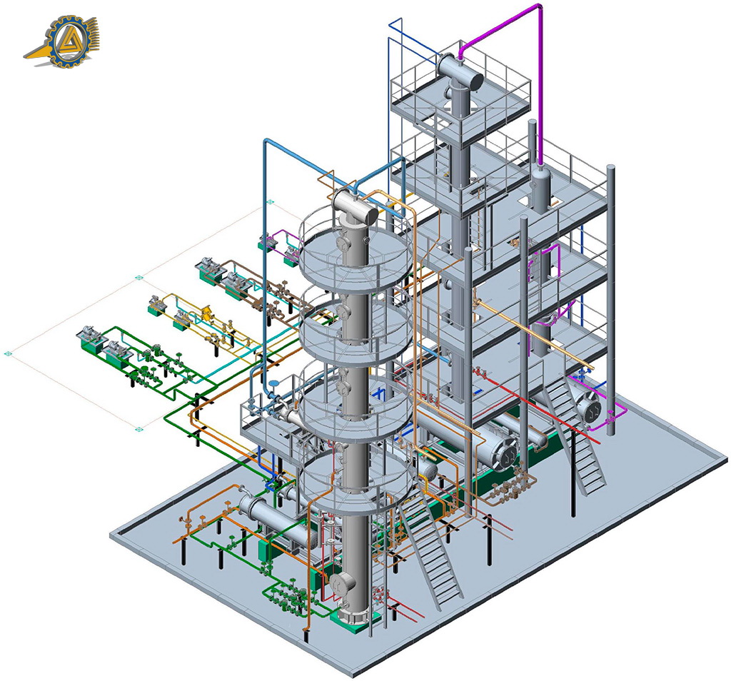 Установка предназначена для разделения нефти или газового конденсата на ректификационных колоннах насадочного типа с предварительным нагревом в трубчатой печи с целью получения: