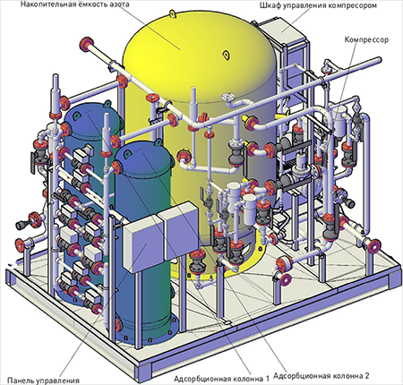 Азотные станции работают на базе технологии короткоцикловой адсорбции с использованием современных углеродных молекулярных сит в качестве адсорбентов.